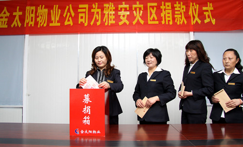 金太陽(yáng)物業(yè)全體員工為雅安災(zāi)區(qū)捐款儀式